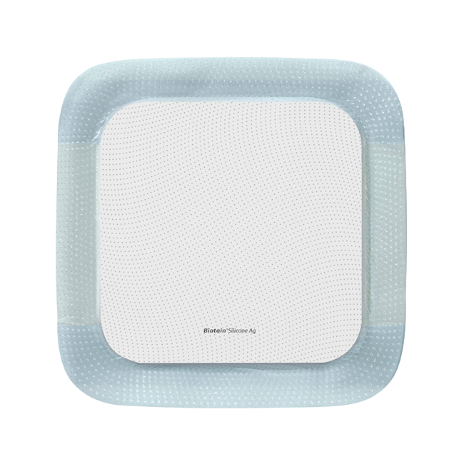 Biatain® Silicone Ag est un pansement de mousse de polyuréthane doux et adaptable avec un complexe ionique d'argent dispersé de manière homogène dans la matrice de la mousse. Le pansement comporte un film supérieur semi-perméable, étanche à l’eau et aux bactéries et une couche adhésive en silicone doux.