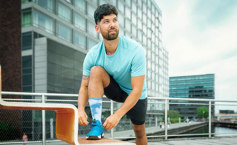 If the area around your stoma is level with your abdomen, the flat SenSura Mio could be right for you. The elastic adhesive offers a secure fit and follows body movement.